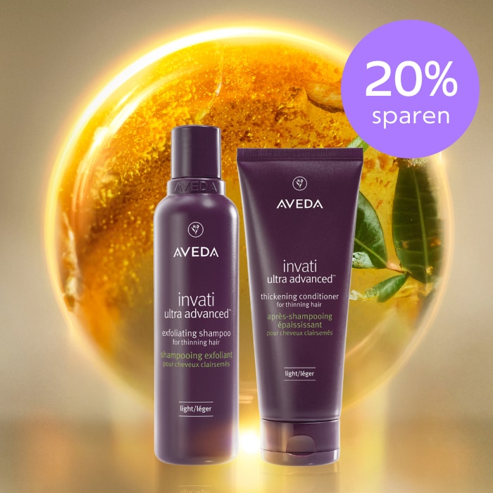 * Angebot gültig für einen 15 %-Rabatt im Aveda Onlineshop beim Kauf von mindestens einem Produkt in Originalgröße. Um von dem Rabatt zu profitieren, gib während des Bestellvorgangs manuell den Aktionscode ein, den du per E-Mail erhältst. Der Aktionscode kann nur einmal pro Konto verwendet werden und erfordert die Anmeldung zum Aveda Newsletter. Er ist nicht mit anderen Rabattaktionen kombinierbar. Neuheiten und Sondereditionen können vom Angebot ausgeschlossen sein.